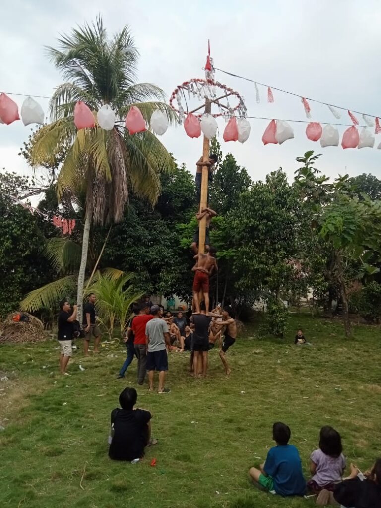 LOMBA PANJAT PINANG DALAM MEMPERINGATI HUT RI KE – 79 DI DESA TANJUNG RAJA DI DUSUN IV